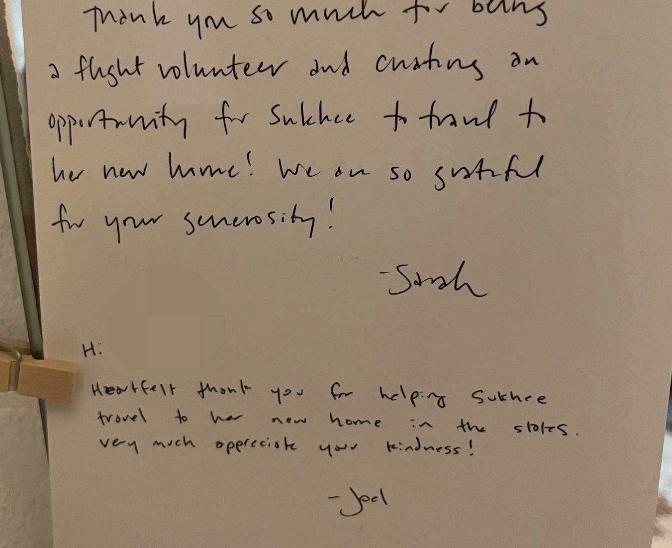 우리가 한 건 별로 없지만 숙희의 새로운 가족이 된 Sarah & Joel 부부가 써준 편지로 기분 좋게 여행을 시작할 수 있었다.