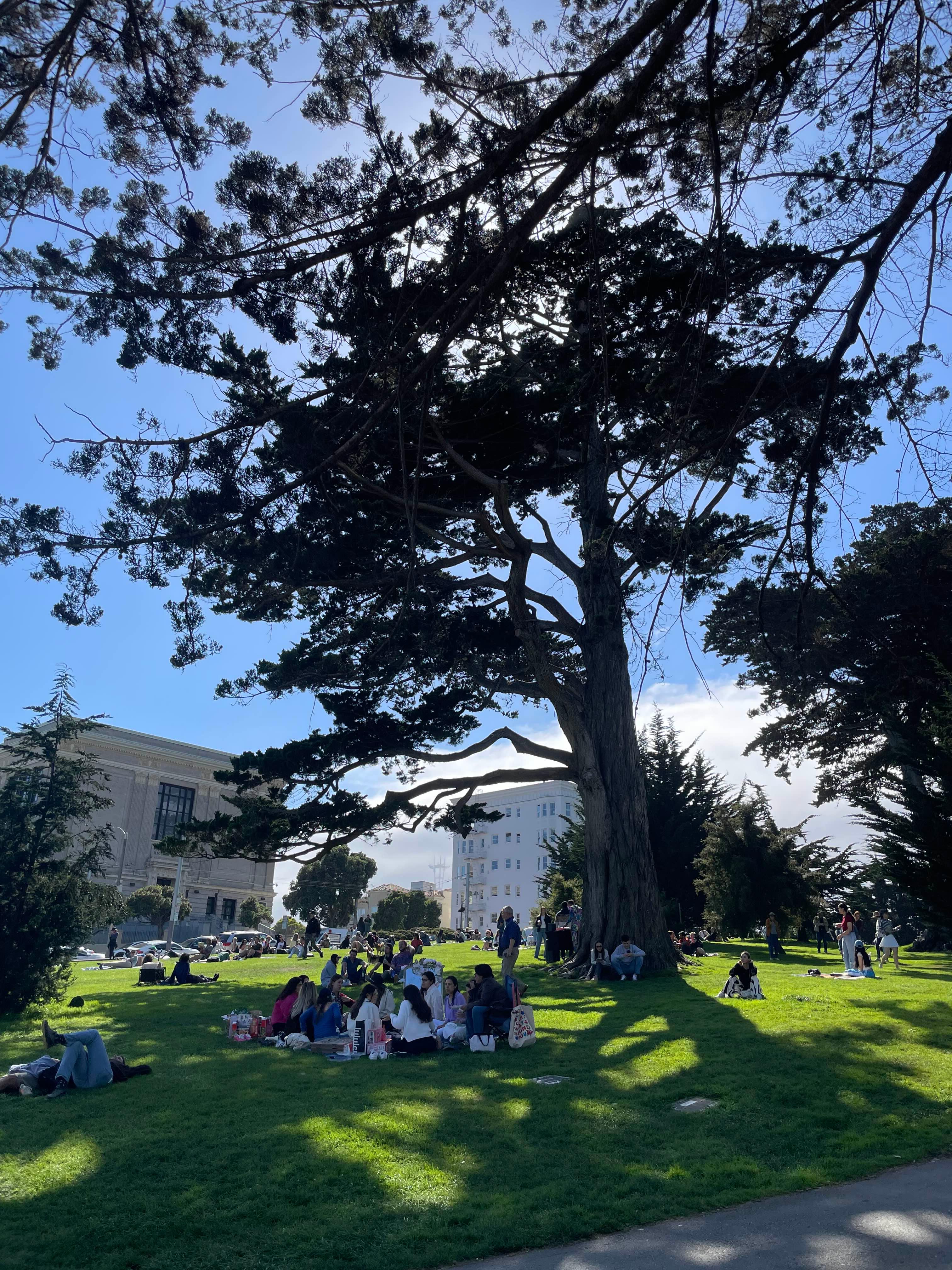 짧은 사진 촬영을 마쳤다면 바로 앞에 있는 공원(Alamo Square Park) 잔디 밭에 앉아서 여유를 즐기기 좋은 장소인 것 같다.